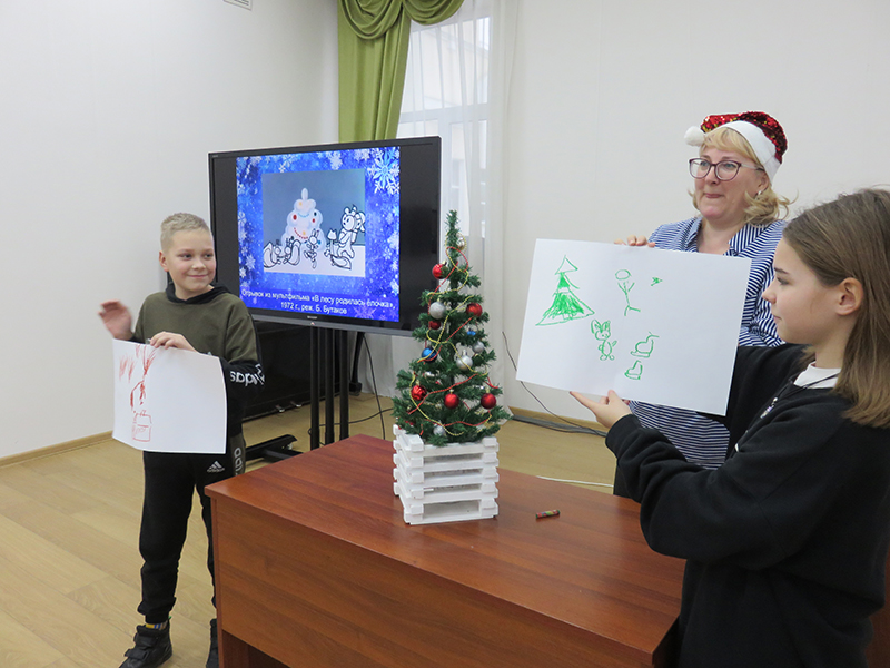 В начале встречи для юных гостей была проведена обзорная экскурсия по библиотеке, а затем ребята стали участниками необычного путешествия. Интерактивная программа «Новый год шагает по планете» рассказала о традициях празднования Нового года и Рождества в разных странах, мальчишки и девчонки узнали много нового и интересного. Они сравнили, какие традиции распространились по всему миру, а какие остались характерными только для определенной страны. И не просто сравнили, а попробовали сами считать виноградины по-бразильски, украшать дом по-немецки, рисовать новогодние желания по-японски, читать предсказания по-китайски, разгадывать новогодние загадки по-русски.
