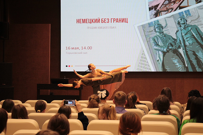 В библиотеке состоялся праздник «Немецкий без границ», в котором приняли участие рязанские школьники, студенты Рязанского государственного университета им. С.А. Есенина, Рязанского художественного училища им. Г.К. Вагнера, их учителя и преподаватели, а также представители Рязанской региональной общественной организации российских немцев «Общество Начало».