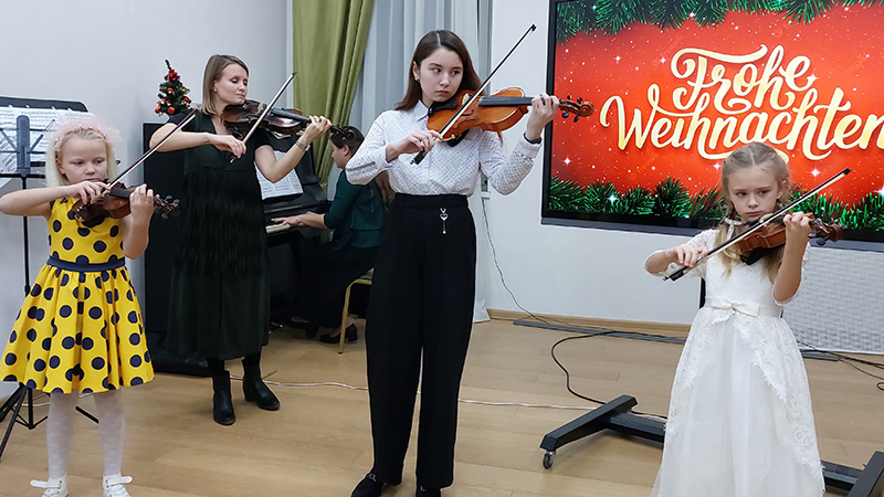 Украшением вечера стали выступления воспитанников детской музыкальной школы № 5, которые исполнили классические произведения немецких композиторов.