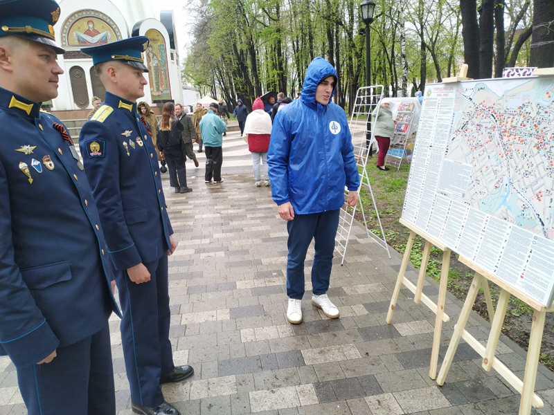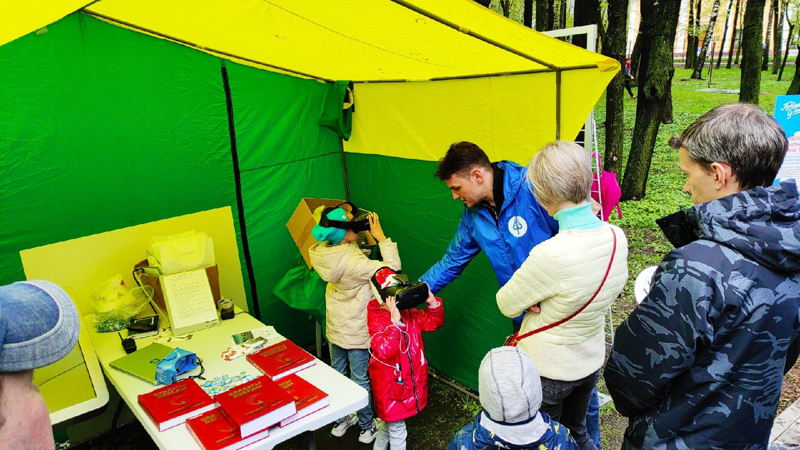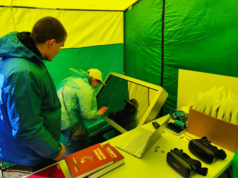 В течение дня все желающие смогли ознакомиться с картой боевых действий на территории г. Рязань 1941–1945 гг.; поучаствовать в викторине, получить призы – значки и закладки с информацией о городах воинской доблести нашего региона; найти информацию о своих родственниках-участниках Великой Отечественной войны на портале «Книга памяти Рязанской области» или внести сведения о них с помощью интерактивного стола; водрузить Знамя Победы на Рейхстаг в виртуальной реальности с помощью VR-квеста «Неизвестный знаменосец»; познакомиться с серией книг «Солдаты Победы» и тематической книжной выставкой к Дню Победы, подготовленной совместно с региональным отделением Российского движения школьников.