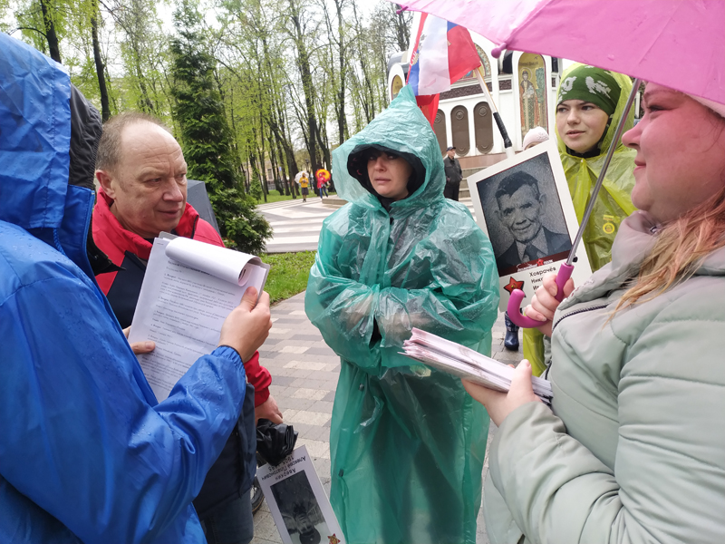 Несмотря на погодные условия, собравшиеся прошли всю дистанцию. Волонтеры подбадривали участников «Бессмертного полка» военными песнями. После шествия в Соборном парке Рязанского кремля состоялись народные гуляния. Со словами благодарности к волонтерам и участникам акции обратились заместитель министра образования и молодежной политики Рязанской области Сергей Хлыстов и руководитель волонтерского корпуса шествия Ольга Медведева.