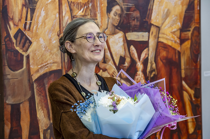Директор Рязанской областной универсальной научной библиотеки имени Горького, председатель Общественной палаты Рязанской области, председатель Рязанского областного Совета женщин, заслуженный работник культуры Российской Федерации, почетный гражданин Рязанской области Наталья Николаевна Гришина обратилась к автору выставки с теплыми словами приветствия, напомнив, что её связывают с именем знаменитого деда художницы долгие годы дружбы и взаимной признательности.