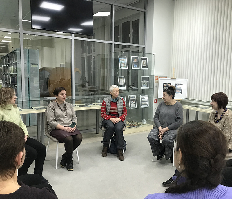 В библиотеке имени Горького 28 декабря прошла очередная встреча в рамках социального проекта – цикла интерактивных лекций «Психологическая поддержка семьи в условиях повышенной напряженности, мировой нестабильности и перемен». Лекцию «Предновогодний психодраматический карнавал “Присвоение несостоявшихся ролей: кем я хотел, да не стал”» прочитали: тренер 1 ступени гештальт и психодрамы, супервизор, гештальт-терапевт, психодраматист Татьяна Черногорская и кандидат психологических наук, доцент, психодраматист, практикующий психолог Татьяна Симакова.