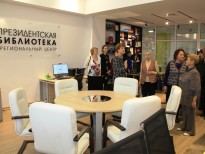 Директор Наталья Николаевна Гришина провела содержательную экскурсию по новому, недавно открытому библиотечно-информационному комплексу. Собравшиеся оценили новый формат библиотечной деятельности. Они посетили Музей книги, Гербовый зал, киноконцертный Горьковский зал на 130 человек, Центр межкультурных информационных ресурсов на иностранных языках «МИР И Я», региональный центр Президентской библиотеки, современный мультимедийный зал и Центр оцифровки, Центр редких и ценных изданий, информационно-библиографический центр.