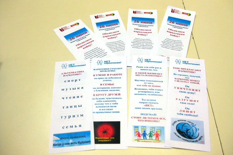 В преддверии Международного дня борьбы с наркоманией Рязанская областная универсальная научная библиотека им. Горького совместно с Центром профилактики асоциальных явлений среди молодежи «Мой выбор» и отделением профилактики наркологических расстройств Рязанского клинического наркологического диспансера провела уличную акцию «Объявляем наркотикам войну!» в рамках проекта «Молодежь. Здоровье. Библиотека».