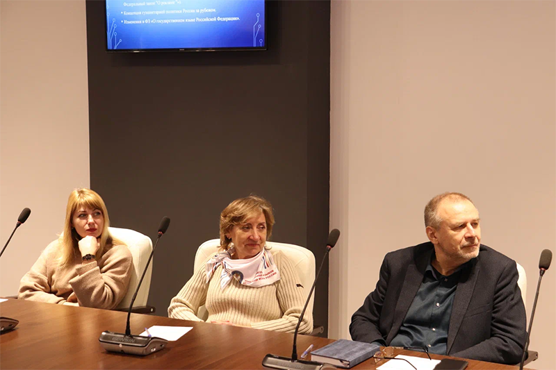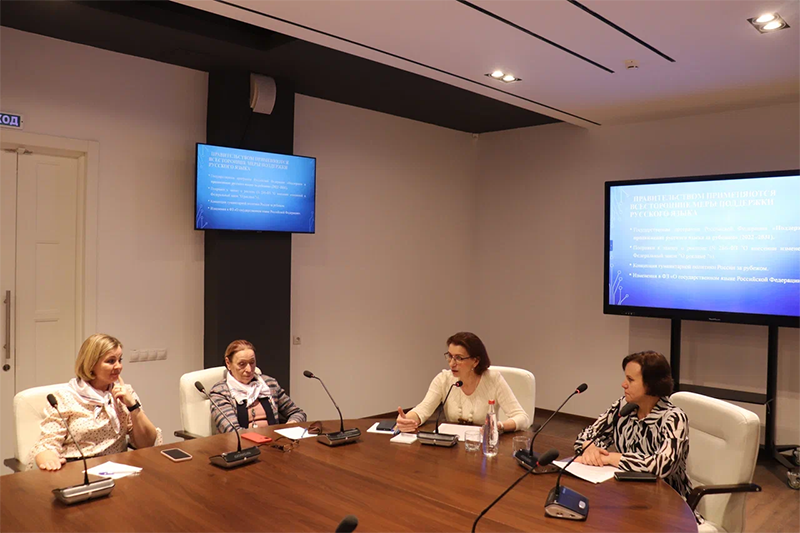 Собравшиеся познакомились с концепцией гуманитарной политики России за рубежом, законопроектом о защите государственного языка РФ и затронули дискуссионные вопросы, касающиеся ответственности за соблюдение языковых норм.