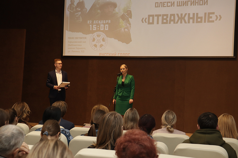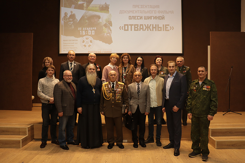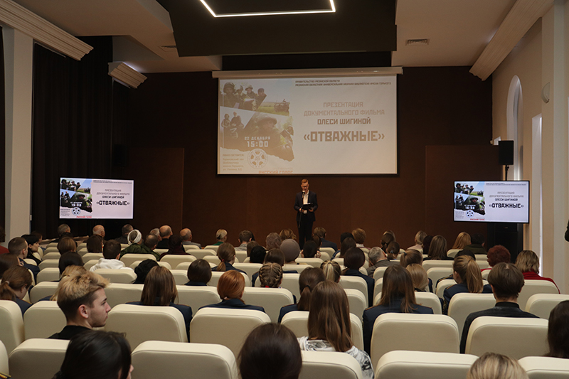 При поддержке Правительства Рязанской области в библиотеке имени Горького состоялась презентация документального фильма «Отважные» режиссера-документалиста Олеси Шигиной. Эта кинолента – яркая портретная галерея людей, живущих на войне и возле войны: ополченцев, не знающих своей завтрашней судьбы; волонтеров, отдающих все силы на помощь фронту; мирных жителей, которые научились по звуку отличать, когда стреляют враги, а когда отвечают наши.