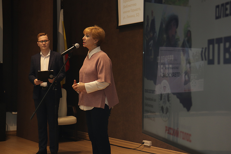Директор библиотеки, председатель Общественной палаты Рязанской области, председатель регионального отделения Союза женщин России Наталья Николаевна Гришина поблагодарила Олесю Николаевну за то, что она «погружает зрителя через камеру в исторические события, делая их соучастниками тех, кто стоит за нашу Победу, защищая Родину на передовой».