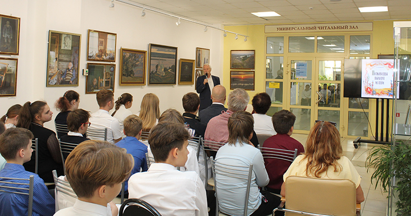 С приветственным словом обратилась директор Рязанской областной универсальной научной библиотеки имени Горького, председатель Общественной палаты Рязанской области, заслуженный работник культуры Российской Федерации Наталья Николаевна Гришина. Она тепло поздравила Олега Васильевича с выходом книги и отметила, что это издание поможет юным читателям глубже узнать историю своей страны и сохранить память о героях, которые руководили сражениями, где решалась судьба России.