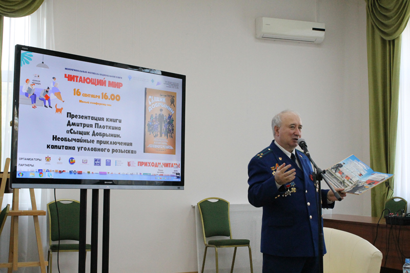 Сегодня в рамках Фестиваля национальной книги «Читающий мир» при содействии Рязанского библиотечного общества в библиотеке имени Горького прошла презентация книги Дмитрия Плоткина «Сыщик Добрынин». Автор – член Союза писателей России, кандидат юридических наук, старший советник юстиции, почетный работник прокуратуры РФ.