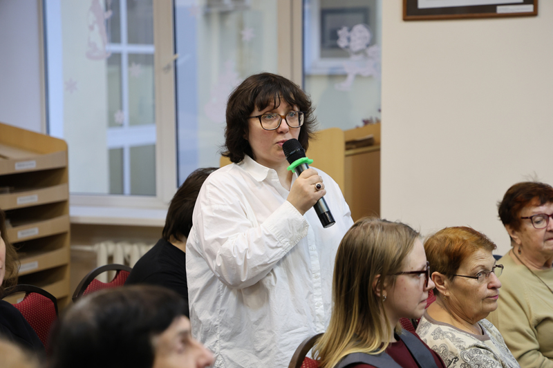 Встреча продолжилась в виде живого общения авторов и аудитории: гости задавали интересующие их вопросы, рассказывали о своем опыте проведения экскурсий по местам воинской славы родного края. На некоторые вопросы ответил Николай Петрович Мальцев, генеральный директор издания «Комсомольская правда – Рязань», корреспонденты которой с 2008 года активно занимаются военно-поисковой работой на территории области.