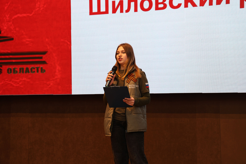 Молодое поколение вносит свой вклад в увековечение памяти о Великой Отечественной войне, делает это с глубоким чувством уважения к ветеранам. На сцену была приглашена Дарина Викторовна Безвесельная, представитель патриотической организации «Молодежка Народного фронта Рязанской области».