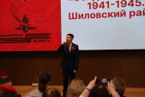 Глава администрации муниципального образования – Шиловский муниципальный район Рязанской области Сергей Дмитриевич Стерликов представил вниманию зрителей презентацию о Шиловском районе в годы Великой Отечественной войны и рассказал о том, как сохраняют память о Великой Отечественной войне сегодня. В первые дни июля 1941 года в Шилове и в селах начались занятия молодежи в военных оборонных кружках, в августе 1941 года была подготовлена первая группа санитаров, которая была отправлена на фронт. В ноябре 1941 года, когда немцы вторглись в пределы Рязанской области, Шиловский райком принял решение о создании районного комитета обороны. Недалеко от железнодорожного моста через реку Пару было установлено зенитное орудие, защищавшее мост от бомбежек вражеской авиации. Железная дорога соединяла столицу с Уралом и Дальним Востоком. Через речной порт Шилово из города Горького на фронт поставлялось оружие, боеприпасы, продовольствие.