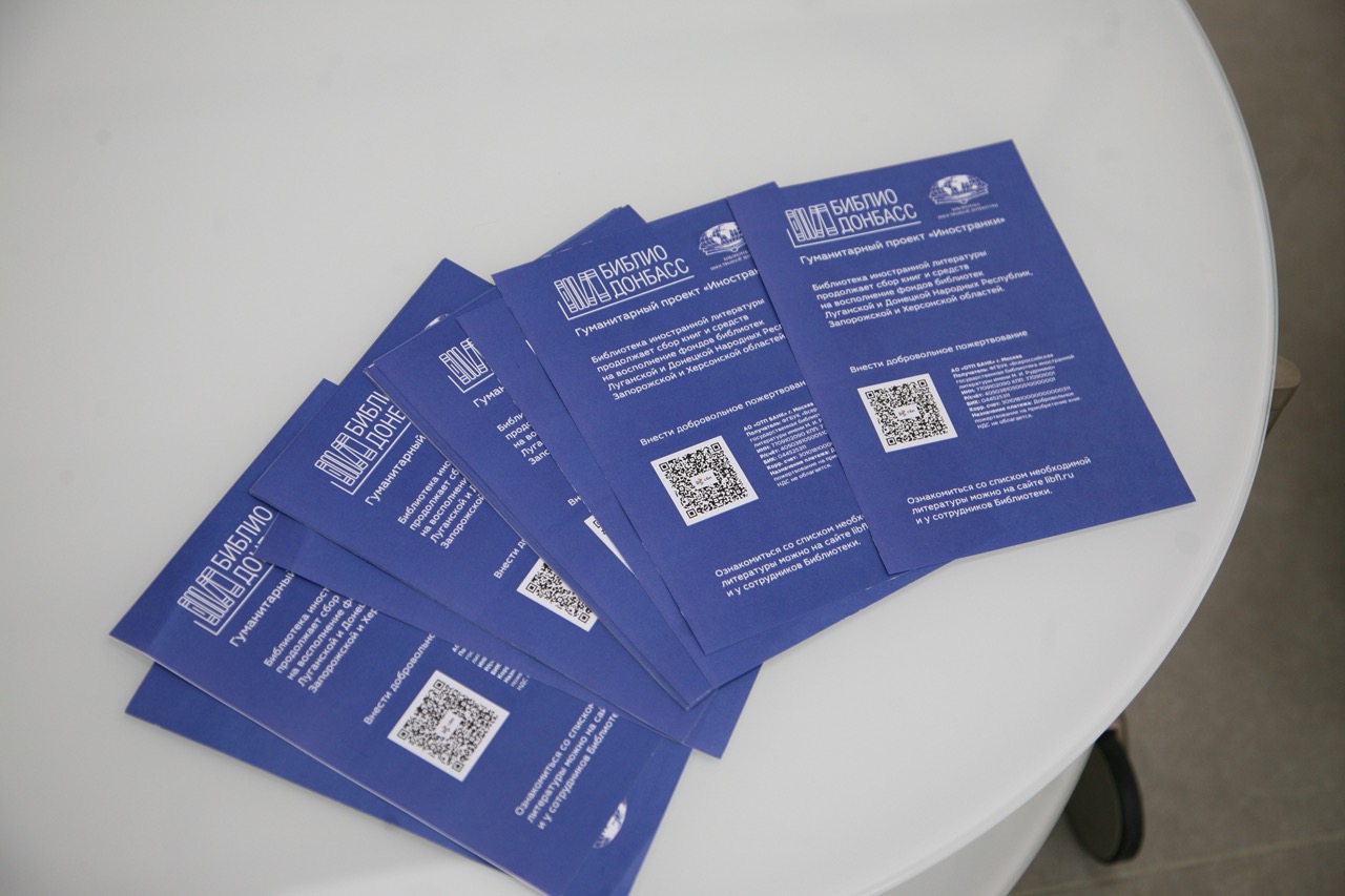 На фестивале национальной книги «Читающий мир» состоялась презентация гуманитарного проекта «БиблиоДонбасс» Всероссийской государственной библиотеки иностранной литературы имени М.И. Рудомино (г. Москва). Проект направлен на системное восполнение фондов библиотек новых субъектов Российской Федерации.