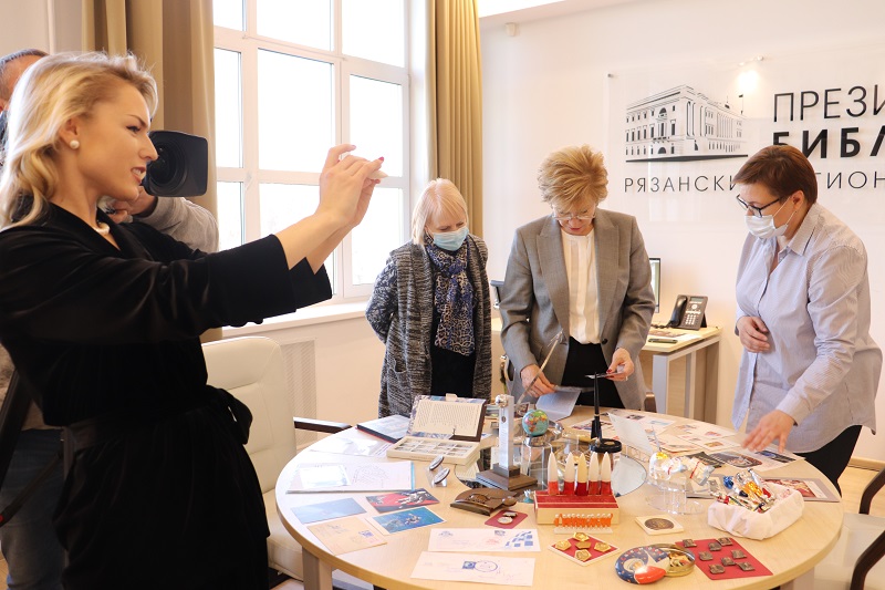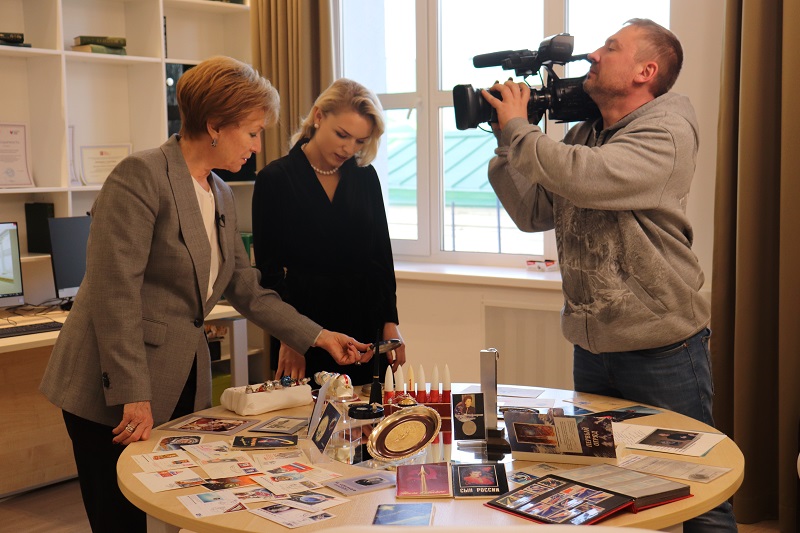 Телеведущая «Роскосмос ТВ» Юлия Дерябина взяла интервью у директора библиотеки Натальи Гришиной, которая рассказала об экспозиции и ответила на ряд интересующих гостей вопросов.