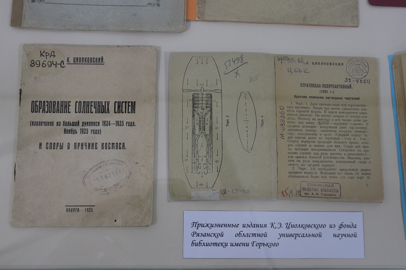 На выставке «Космическая эра человечества» представлены издания из фондов Рязанской областной универсальной научной библиотеки имени Горького и Президентской библиотеки имени Б.Н. Ельцина. Они дополняют собрание российского коллекционера, культуролога, литератора и художника Арсена Мелитоняна и его супруги Кэри Линн Рэди, американского историка культуры, почетного иностранного члена Союза филокартистов России, зарубежного члена Национальной академии филателии России. Посвященное освоению человечеством космического пространства, оно включает иллюстрированную филокартическую, печатную и сувенирную продукцию, памятные медали и значки, выпущенные в нашей стране и за рубежом за период межпланетных исследований.