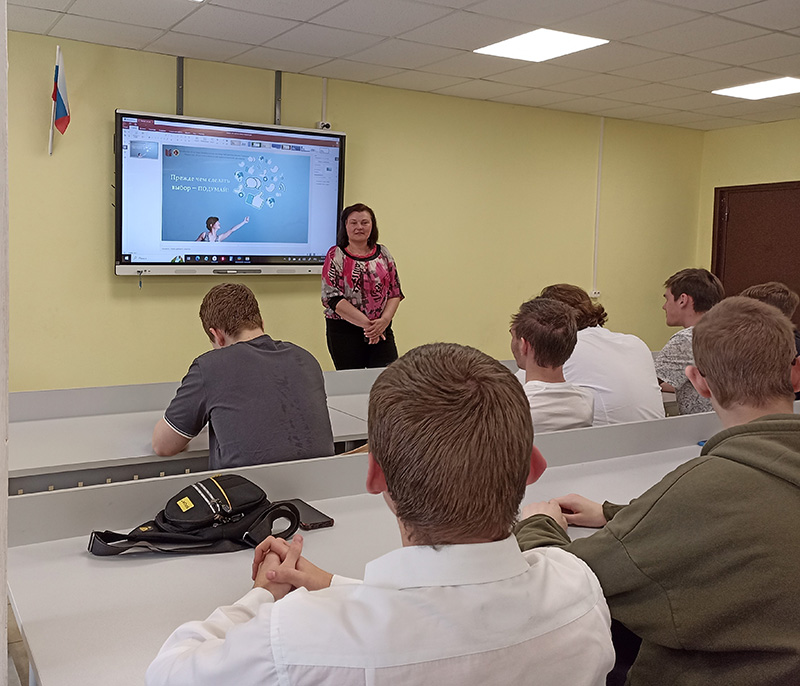 Медицинский психолог Рязанского областного клинического наркологического диспансера Наталья Алексеевна Михейкина рассказала студентам о вреде алкоголя и наркотиков, о тяжелых последствиях употребления веществ, вызывающих привыкание. Специалист дала студентам рекомендации, как правильно вести себя и куда обратиться за помощью в случае возникновения проблемы у друзей и родных.