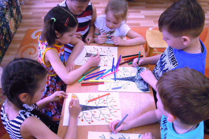 В красочных книгах, которые принесли с собой библиотекари, ребята увидели старинные и современные термометры. Юные художники попробовали нарисовать деревья в различное время года.