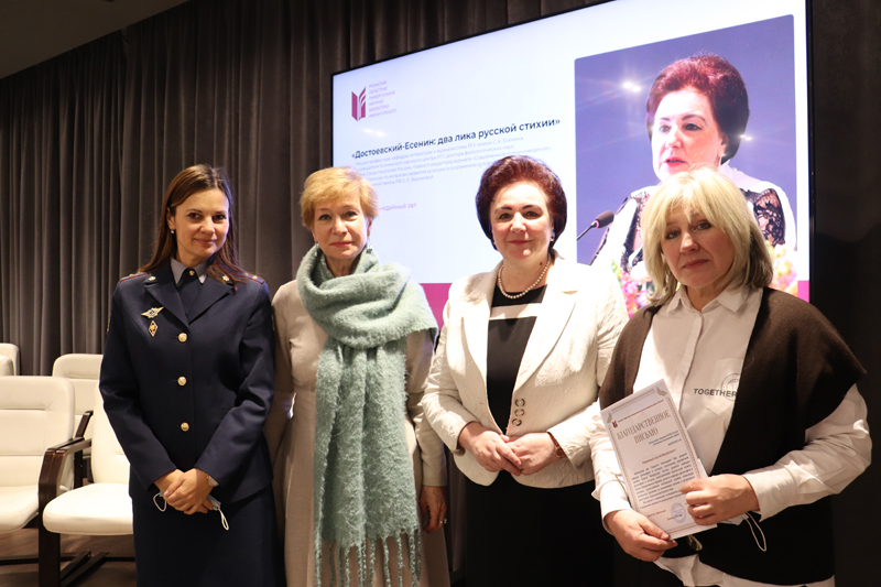 С приветственным словом к присутствующим обратилась директор библиотеки, кандидат психологических наук Наталья Николаевна Гришина. Она подчеркнула, что сегодня библиотека завершает образовательный проект, посвященный имени Ф.М. Достоевского. «Мы узнаем, как эти два великих имени связаны, что их объединяет и как они соединены в сознании современников», – сказала Наталья Николаевна, представляя лекцию «Достоевский и Есенин: два лика русской стихии».