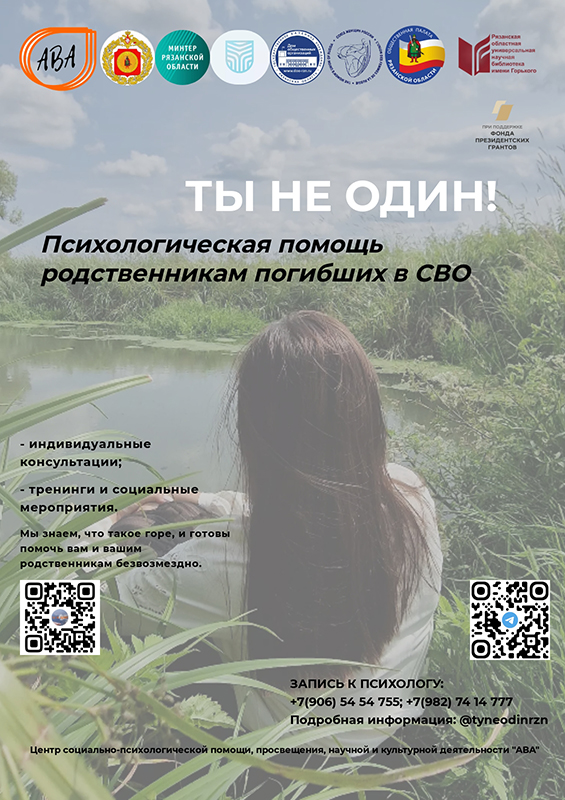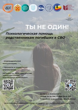 Проект «Ты не один!» создан, чтобы помочь людям, потерявшим близких в СВО, справиться с ситуацией и обрести новые точки опоры. Это комплексная программа безвозмездной социально-психологической помощи по восстановлению человека в состоянии горя.