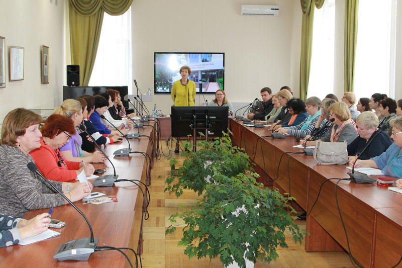 Открыла встречу директор библиотеки имени Горького Н.Н. Гришина. В своем выступлении она рассказала об основных направлениях работы библиотеки, о социальной роли библиотек в современном обществе, важности постоянного профессионального развития специалистов сферы культуры, о грантовой поддержке социально ориентированных некоммерческих организаций – партнеров библиотеки.