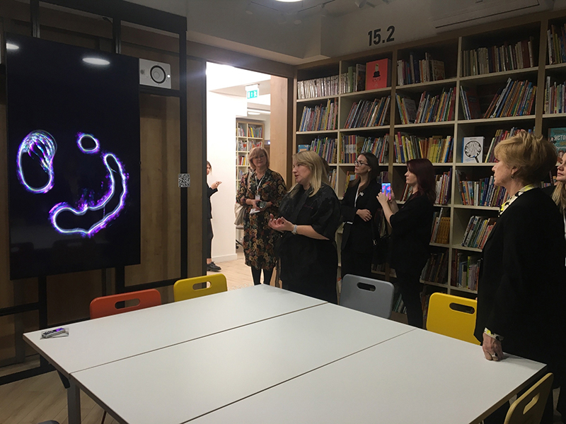 Участники познакомились с успешным опытом работы в сфере проектных решений, дизайна и технологических интеграций, а также уникальной библиотечной технологией «Книжный Луч», позволяющей осуществлять автоматизированный поиск книг с помощью элементов дополненной реальности.
