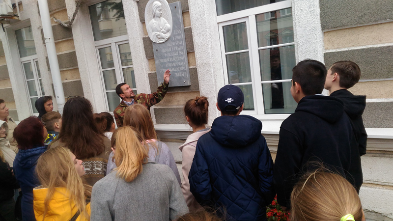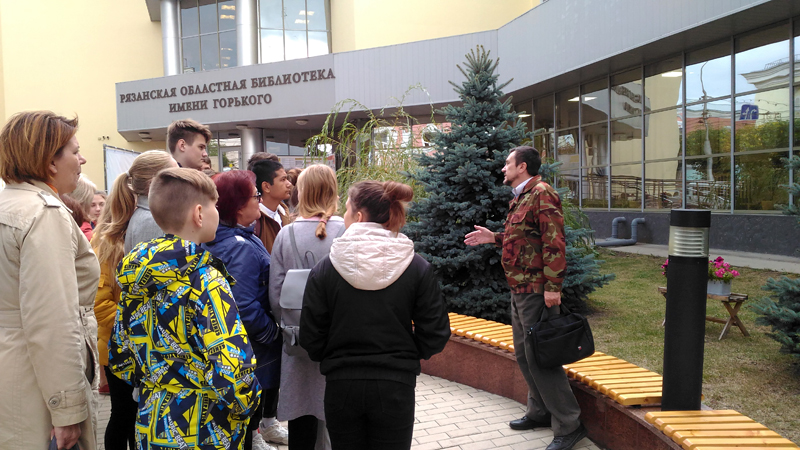 Игорь Николаевич, много и глубоко изучающий родной город, рассказал учащимся школ №№ 11, 30, 47 и 65 об архитектурных объектах, не один век украшающих наш город, об известных рязанцах, которые жили в прошлых веках и прославились в наши дни. Несмотря на дождь, с большим интересом учащиеся слушали о Рязани прежней, с ее деревянными домами, от которых веет теплом и очарованием. Игорь Николаевич приводил много интересных фактов, проводил исторические параллели. Ребята услышали о домах с «добрыми» и «злыми львами», о деревянных мостах через речку Лыбедь; было уделено внимание предстоящим юбилейным датам – 200-летию Якова Петровича Полонского и 75-летию Великой Победы, которые мы будем отмечать в 2020 году.