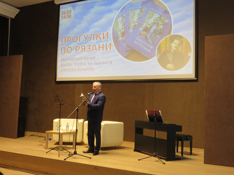 В клубе «ОЛИМП» в честь Дня работника культуры прошел творческий вечер замечательного барда, поэта, композитора Алексея Фошина. Встреча была приурочена к выходу его нового сборника стихов «Прогулки по Рязани».
