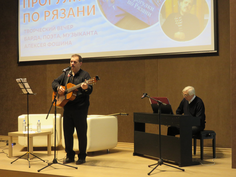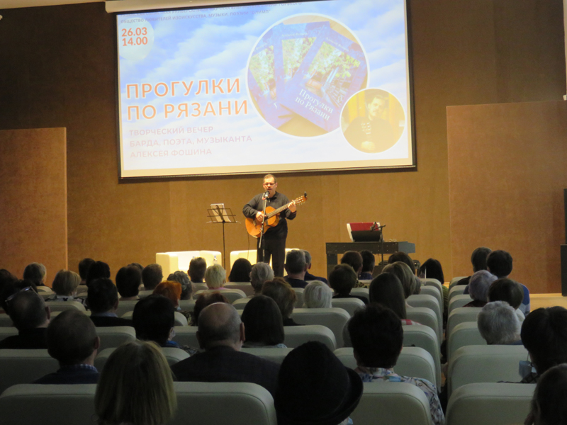 Алексей Фошин предварял исполнение песен занимательными историями о событиях, вдохновившими его создание того или иного стихотворения. Шесть разделов поэтического сборника «Прогулки по Рязани»: «Прогулки по Рязани», «Провинциалка», «Особый запах Крыма», «Все повторяется» «Моим друзьям», «Давайте сменим тему» были представлены удивительными произведениями, целиком захватившими внимание слушателей, вовлекая их в заповедный поэтический мир автора, настраивая на одну с ним волну.