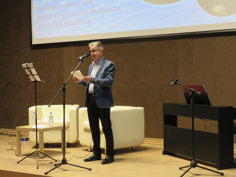 Прошедшая в областной библиотеке встреча была многолюдной, Горьковский зал едва смог вместить всех желающих приобщиться к творчеству Алексея Фошина, услышать его новые произведения. Программу открыл член Союза писателей России, автор предисловия к сборнику стихов Нурислан Ибрагимов. Говоря о личности и творчестве Алексея Фошина, он назвал его подлинным талантом, «одним из ярких культовых брендов, песенных символов Рязани».