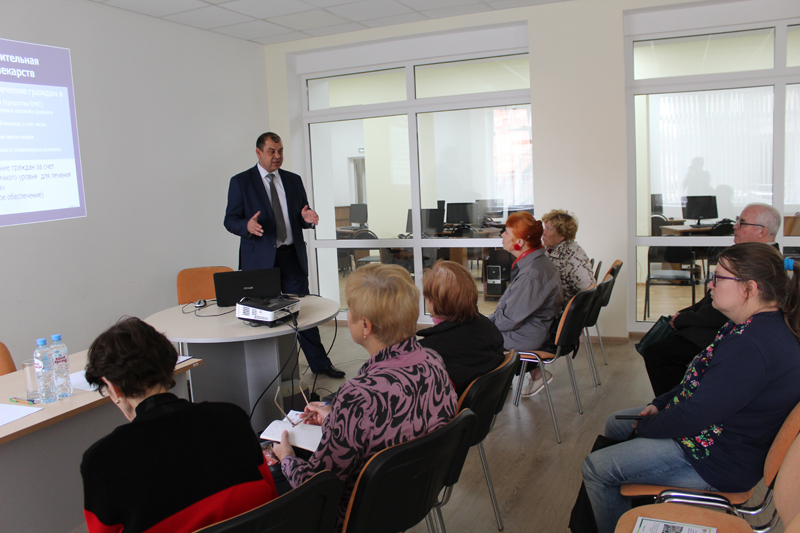 «Льготное лекарственное обеспечение: порядок исполнения и ответственность» – такова тема сегодняшней встречи. Гостем лектория был начальник отдела организации лекарственного обеспечения регионального министерства здравоохранения Александр Егоров. Порядок назначения федеральных и региональных льгот по получению лекарств; нормативные документы, утверждающие перечни препаратов; порядок отказа от компенсационных выплат – об этом и многом другом участники встречи получили подробную информацию.