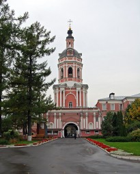 Надвратная церковь Тихвинской иконы Богоматери – четырехъярусная церковь. Здесь молился патриарх Тихон во время заточения. Около паперти – чугунная кованая решетка начала XVIII века и иконостас 1782 года.