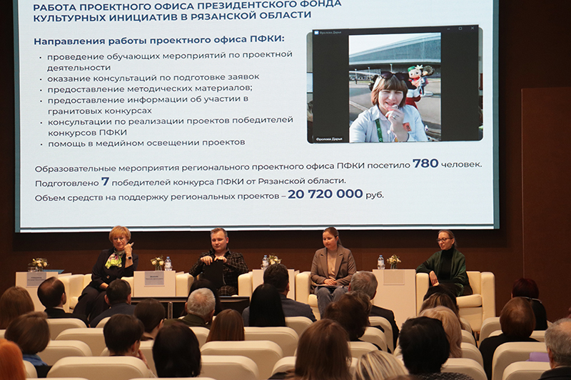 Украшением заседания Общественного совета стало приветствие с Всемирного фестиваля молодежи, проходящего в г. Сочи на площадке образовательного центра «Сириус». В формате прямого включения заведующий центром креативных индустрий Никита Николаевич Попов рассказал о работе проектного офиса Президентского фонда культурных инициатив в Рязанской области и реализации федерального проекта «Гений места». Заведующая отделом молодежных проектов и волонтерской деятельности Дарья Юрьевна Фролова провела для коллег живой репортаж об участии в фестивале молодежи сотрудников библиотеки имени Горького, находящихся в составе рязанской делегации.