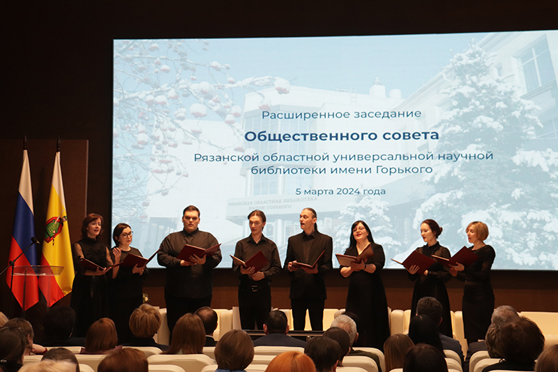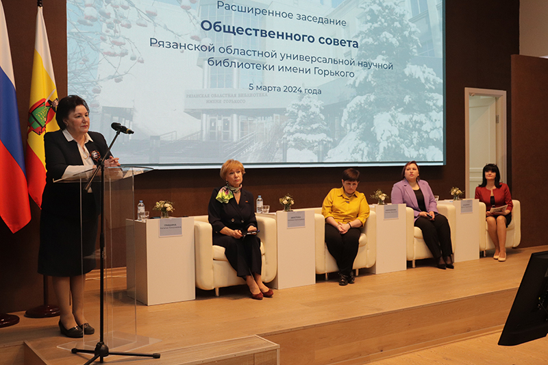 5 марта в Горьковском зале прошло расширенное заседание Общественного совета библиотеки с участием приглашенных гостей: почетных читателей библиотеки, ректоров РГРТУ имени В.Ф. Уткина и РГАТУ имени П.А. Костычева, представителей министерства культуры и министерства территориальной политики Рязанской области, Рязанского историко-архитектурного музея-заповедника, Дома общественных организаций, научной библиотеки РГУ имени С.А. Есенина, директоров государственных и муниципальных библиотек Рязанской области. Более 500 человек наблюдали за ходом заседания в прямой трансляции посредством видеоконференцсвязи.