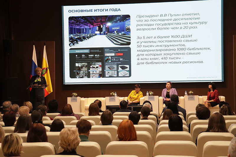 Со вступительным словом к участникам и зрителям обратилась председатель Общественного совета РОУНБ им. Горького, доктор филологических наук, профессор Рязанского государственного университета имени С.А. Есенина, член Комиссии по вопросам развития культуры и сохранению духовного наследия Общественной палаты Российской Федерации Ольга Ефимовна Воронова. В ее выступлении итоги деятельности библиотеки в 2023 году получили самую высокую оценку, основанную на знании внутренних производственных процессов библиотеки и глубоком анализе отклика внешней среды.