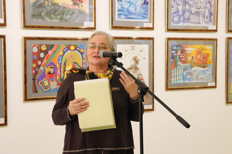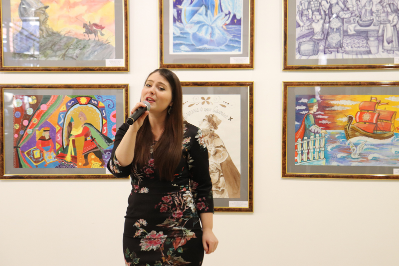 Открыла мероприятие Надежда Чернова, заместитель директора библиотеки по социокультурной деятельности и связям с общественностью, напомнив о трагических событиях 10 февраля 1837 года, когда перестало биться сердце великого поэта. Она познакомила присутствующих с выставочным проектом «Я памятник себе…», подготовленным библиотекой им. Горького совместно с художественным музеем «Арт-Донбасс». В экспозиции представлены произведения юных художников – участников открытого конкурса детского рисунка «Я памятник себе…», организованного при поддержке управления культуры города Донецка. Среди работ много иллюстраций к поэме «Руслан и Людмила», роману «Евгений Онегин», к замечательным сказкам Пушкина. Надежда Чернова отметила, что прекрасным дополнением к рисункам стала книжная выставка редких книг из фонда библиотеки им. Горького.