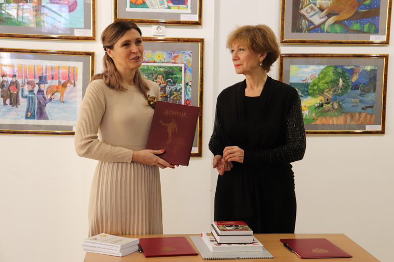 Екатерина Калиниченко, директор художественного музея «Арт-Донбасс» г. Донецка, поблагодарила всех, кто принял участие в реализации этого проекта, и выразила надежду на дальнейшую совместную работу. На открытии выставки состоялось подписание соглашения о сотрудничестве между библиотекой им. Горького и художественным музеем «Арт-Донбасс».