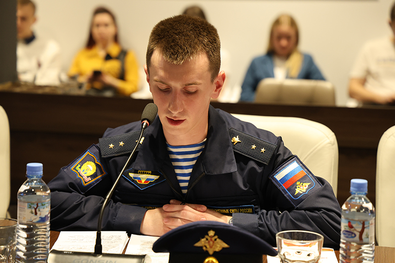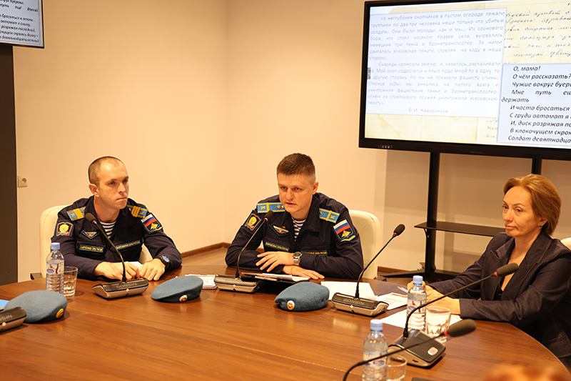 Особое волнение вызвали выступления курсантов Рязанского гвардейского высшего воздушно-десантного командного училища имени генерала армии В. Ф. Маргелова, которые продолжают дело высокого служения своих прадедов, дедов и отцов. Так, Иван Александрович Соколов представил доклад «Военные учебные заведения Рязанской области в годы Великой Отечественной войны». Курсант Илья Алексеевич Белоенко рассказал о преемственности поколений в истории своей семьи – «Великая Отечественная война и Специальная военная операция». Он сообщил о том, что в его казачьем роду воевали все и внесли достойный вклад в Победу в годы Великой Отечественной, служат и сейчас. Тему «Великая Отечественная война в судьбе моей семьи» представил еще один курсант Владислав Алексеевич Зубарев: он поделился сведениями о жизни своих прадедов. Курсант этого же училища Владислав Сергеевич Колышкин раскрыл тему «Пускай я вечно буду неизвестным, но буду частью Вечного огня». Он рассказал, что среди хорошо известных имен и рязанские поэты-фронтовики – Б.И. Жаворонков, Борис Куняев и другие. Он назвал и участников СВО, выпускников училища, погибших на СВО, и прочел стихотворение Никиты Самойлова.