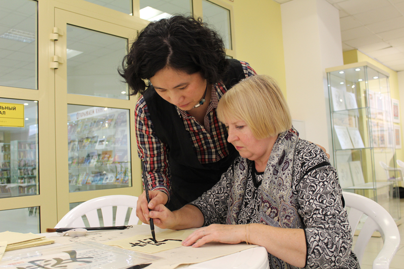 25 сентября под руководством художницы из Китая Бу Нин и рязанского живописца Андрея Наумова в библиотеке состоялся мастер-класс по основам каллиграфии. Встреча прошла в рамках выставки китайской национальной живописи гохуа по многочисленным просьбам её посетителей.