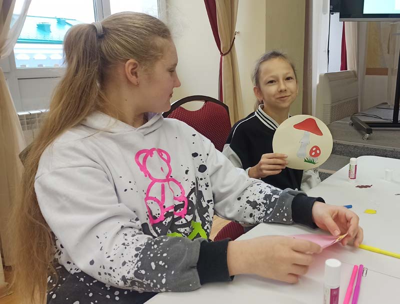 Ребята активно отвечали на вопросы викторины, а затем на мастер-классе с удовольствием делали открытку «А у нас в Рязани – грибы с глазами».