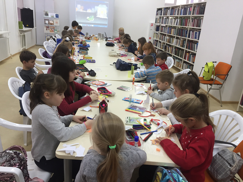 Дети активно участвовали в викторине «В сказочной стране», а самые эрудированные получили в подарок от библиотеки детские книги. Юные читатели вспомнили строки из пушкинских сказок и с удовольствием посмотрели отрывки из мультфильмов по его произведениям. Особенно понравилось ребятам мастерить из бумаги «ученого кота», раскрашивая его цветными карандашами. Кот получился ярким и задорным.