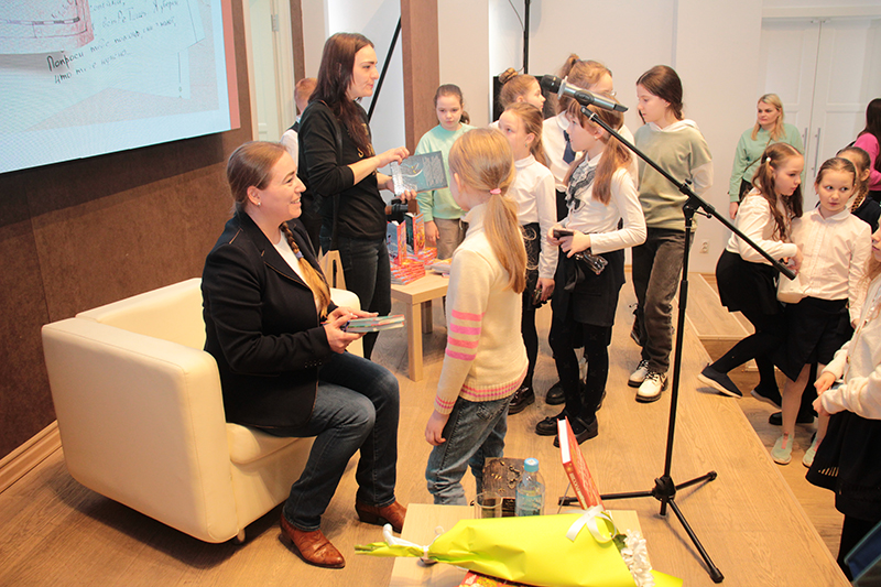 Открыла встречу директор библиотеки Наталья Николаевна Гришина. Она поздравила ребят с главным событием в мире детской литературы – «Неделей детской книги – 80. История с продолжением» – и пожелала юным читателям незабываемых впечатлений от встречи с героями книг Светланы Кривошлыковой.