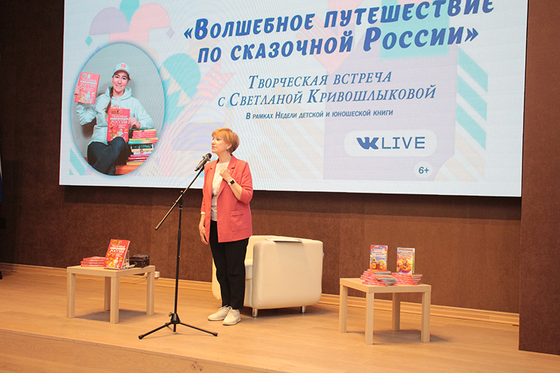 30 марта в рамках Недели детской книги в Рязанской областной универсальной научной библиотеке имени Горького прошла встреча с писателем, путешественником и сказочником Светланой Кривошлыковой