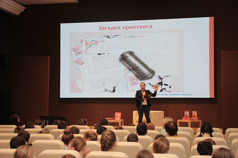 Светлана Кривошлыкова помогла юным читателям узнать много нового о культуре нашей страны, о сказочных героях и волшебных предметах. Ребята с большим удовольствием отгадывали загадки, ребусы, головоломки, с помощью которых смогли разгадать шифр волшебного криптекса.