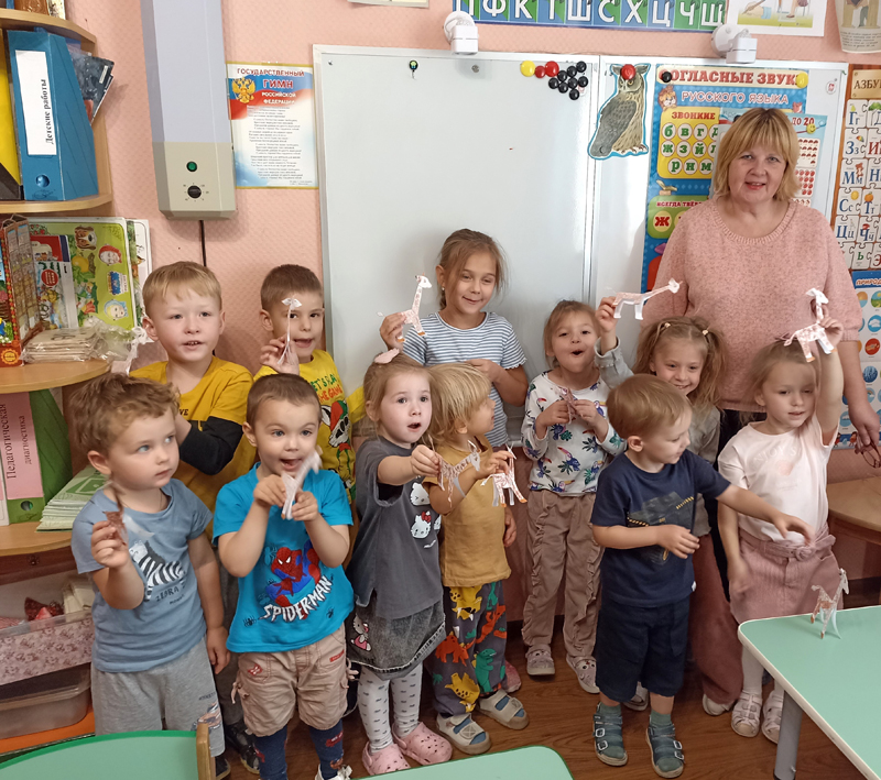 После прочтения рассказа «Гости» Михаила Пришвина дети перечислили животных и птиц, которые запомнились. Юные любители природы поучаствовали в конкурсах, ответили на вопросы викторины, отгадали загадки, а затем из бумаги собрали и раскрасили самое высокое наземное животное планеты – жирафа.