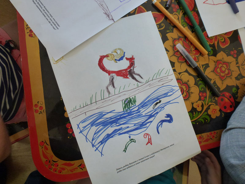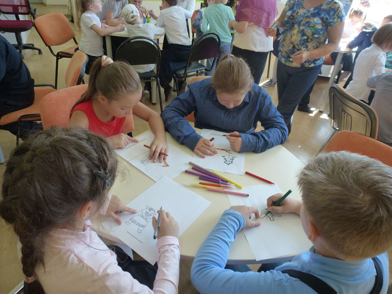 Родителям Наталия Владимировна Соколова представила презентацию книги «Сказки-раскраски». Старые сказки из собрания А. Афанасьева рассказаны нашим современником, писателем-сказочником Александром Шевцовым. Готовя книгу к выпуску, издатели поняли, что, слушая сказку, человек в своем воображении всегда дорисовывает книжные образы. Поэтому были напечатаны не просто сказки, а сказки-раскраски. Обращаясь к родителям, Наталия Владимировна сказала, что взрослые, читая сказки, вспоминают себя ребенком, который вместе со сказочником творит мечты. Александр Шевцов добавил в эту книгу картинки для детей, которые любят рисовать, но не умеют и стесняются.