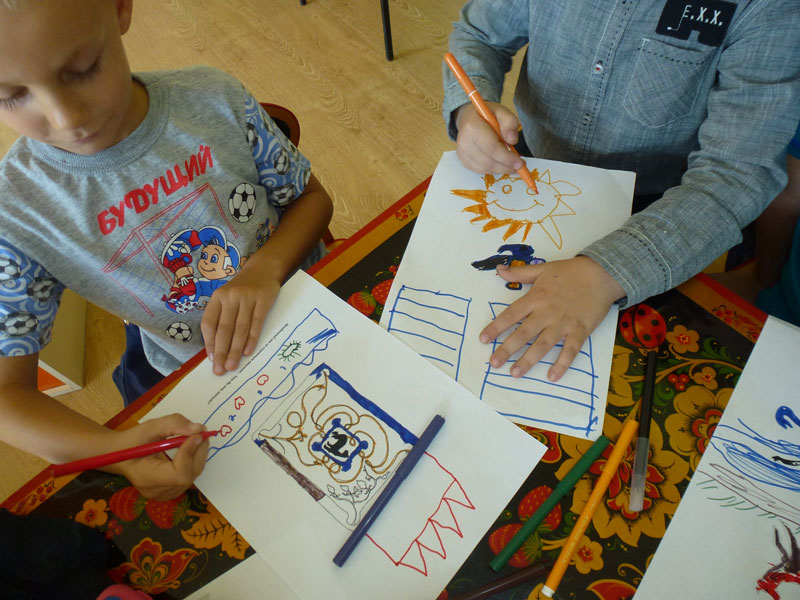 Детям Н.В. Соколова предложила дорисовать и раскрасить эти картинки для того, чтобы ребята смогли воплотить свои мечты, выразить свое отношение к окружающему миру и раскрыть свои творческие возможности. Цель родителей, используя этот прием, помочь своим детям преодолеть свои страхи и научить смотреть на этот мир другими глазами.