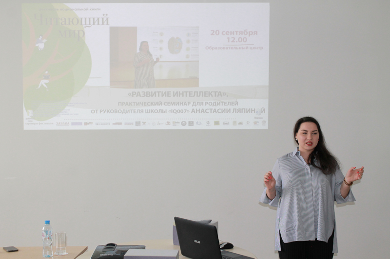В рамках Межрегионального фестиваля национальной книги «Читающий мир» в библиотеке Горького прошел практический семинар от руководителя школы скорочтения и развития интеллекта «IQ007» Анастасии Ляпиной.
