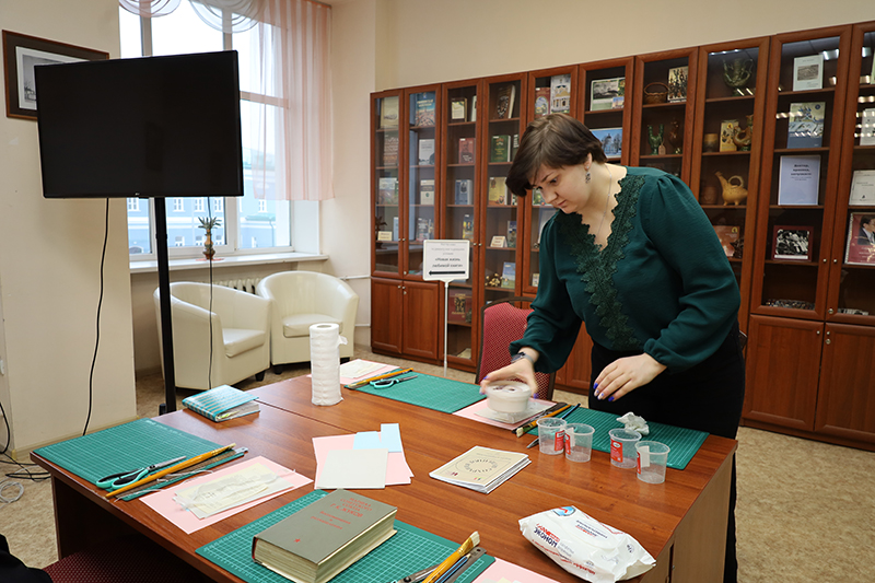О том, как произвести ремонт книги в домашних условиях, гости узнали в ходе мастер-класса «Новая жизнь любимой книги» от Центра консервации и реставрации библиотечных фондов Рязанской области.