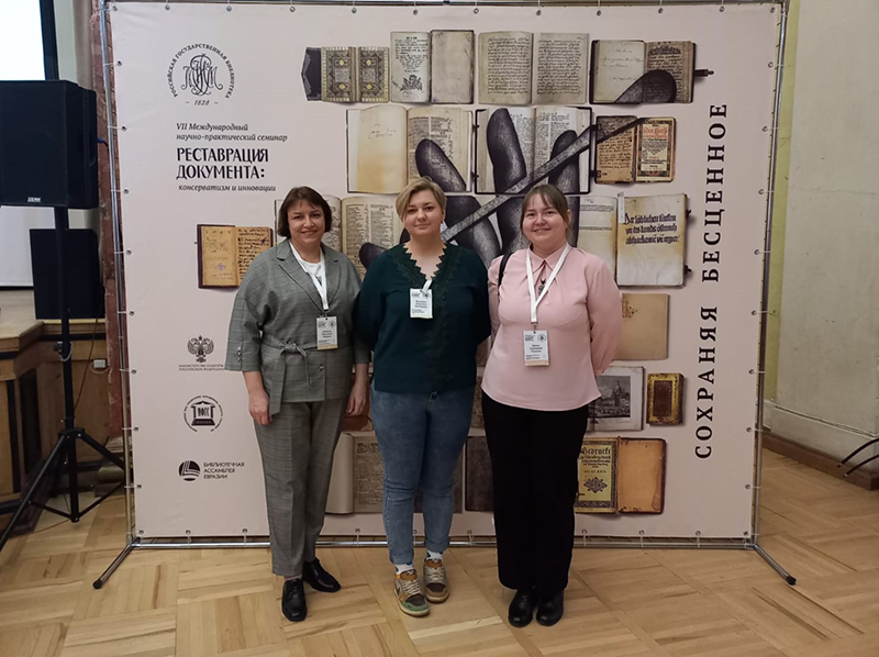С 8 по 12 апреля в Москве проходил VII Международный научно-практический семинар «Реставрация документа: консерватизм и инновации – 2024», организованный Российской государственной библиотекой. В работе семинара приняли участие Людмила Фирсова, заведующий региональным центром консервации и реставрации библиотечных фондов библиотеки имени Горького, и художники-реставраторы Виктория Бердиёрова и Ирина Ушакова.